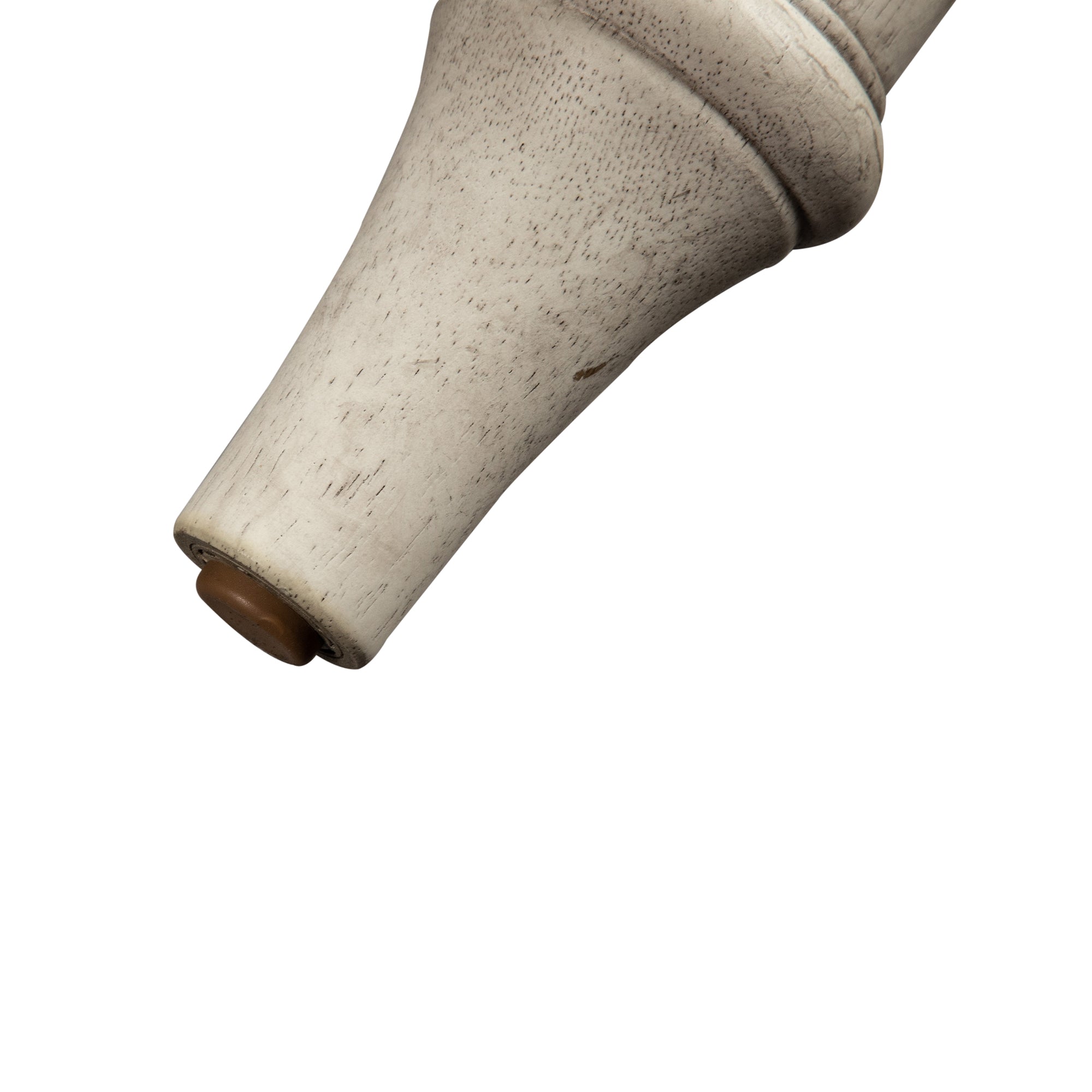 Gather around the Whitney rectangular leg table. Crafted of rubberwood solids and oak veneers, this piece features an English country charm, one 12" leaf to accommodate guests or a larger family, planked top, and is anchored by heavily turned legs. The antique linen and weathered gray finish gives this group an heirloom appeal.