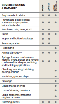 Furniture Depot's furniture protection plan, covered by Guardsman Furniture Professionals, protects your new fabric, leather, and wood furniture from accidental stains and damage for five years. When you need us, we’ll send an expert technician to restore your furniture.