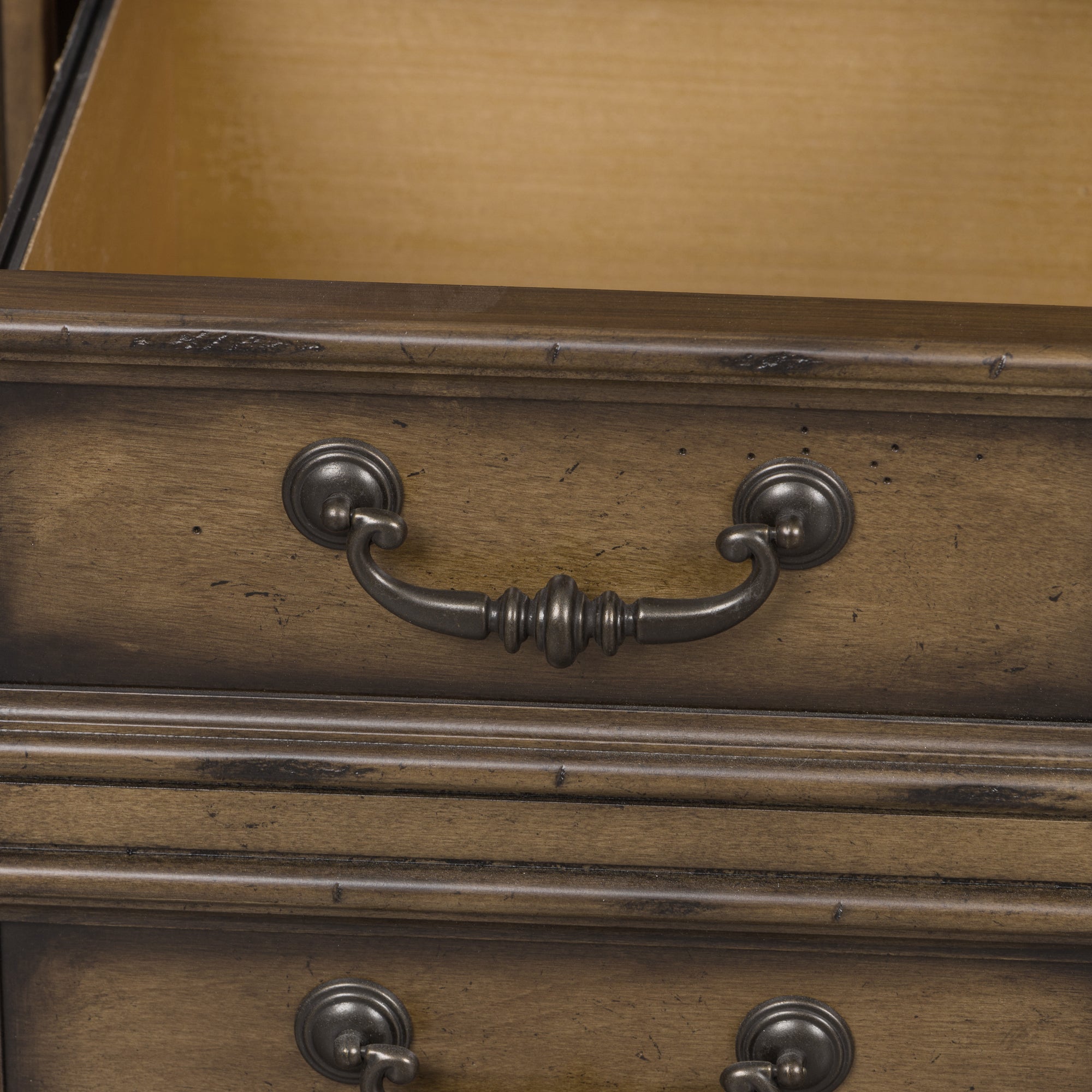 - Antique Brass Knob & Bail Pull Hardware