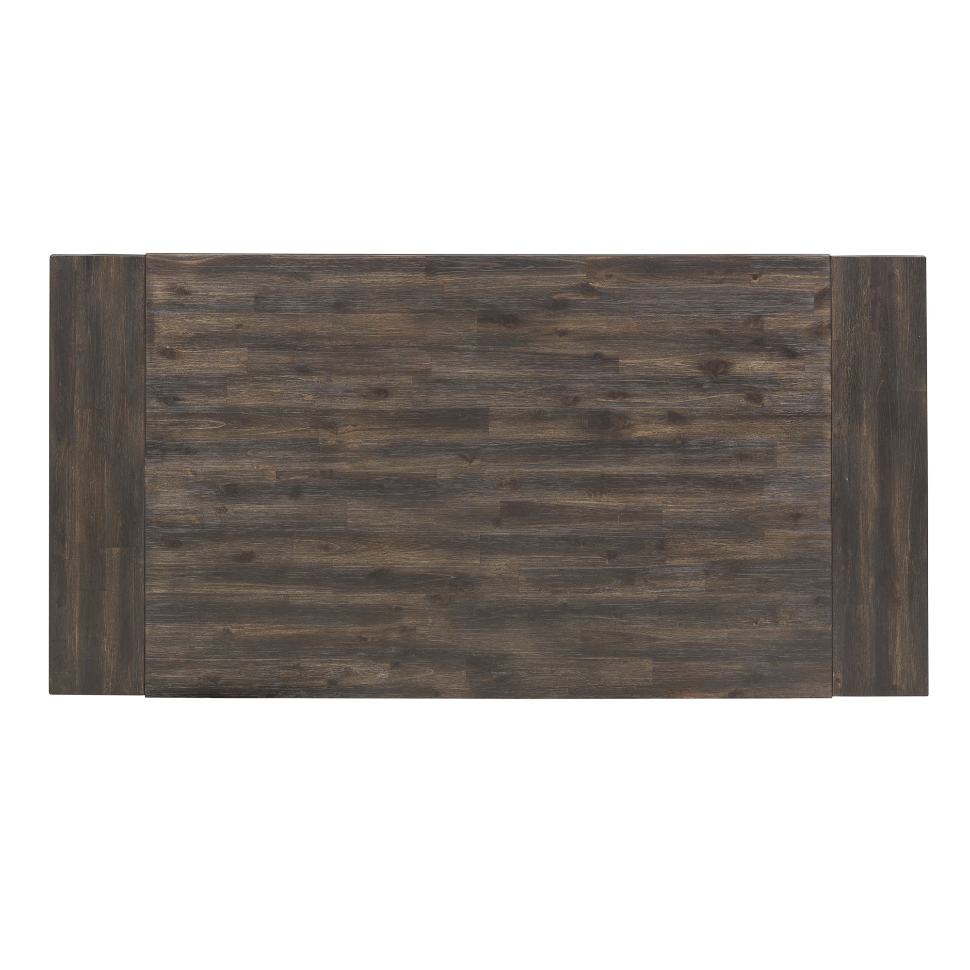 Gather the family around the Double Bridge gathering table set. Crafted of rubberwood solids and acacia veneers, this set consists of a gathering table base and top and features a dark chestnut finish with wire brushing, and two 12-inch leaves, one for each end of the table, to accommodate guests or a larger family, and an easy glide track system for added convenience. The Double Bridge Dining defines the rustic side of casual. The sleek design is optimal for any space.