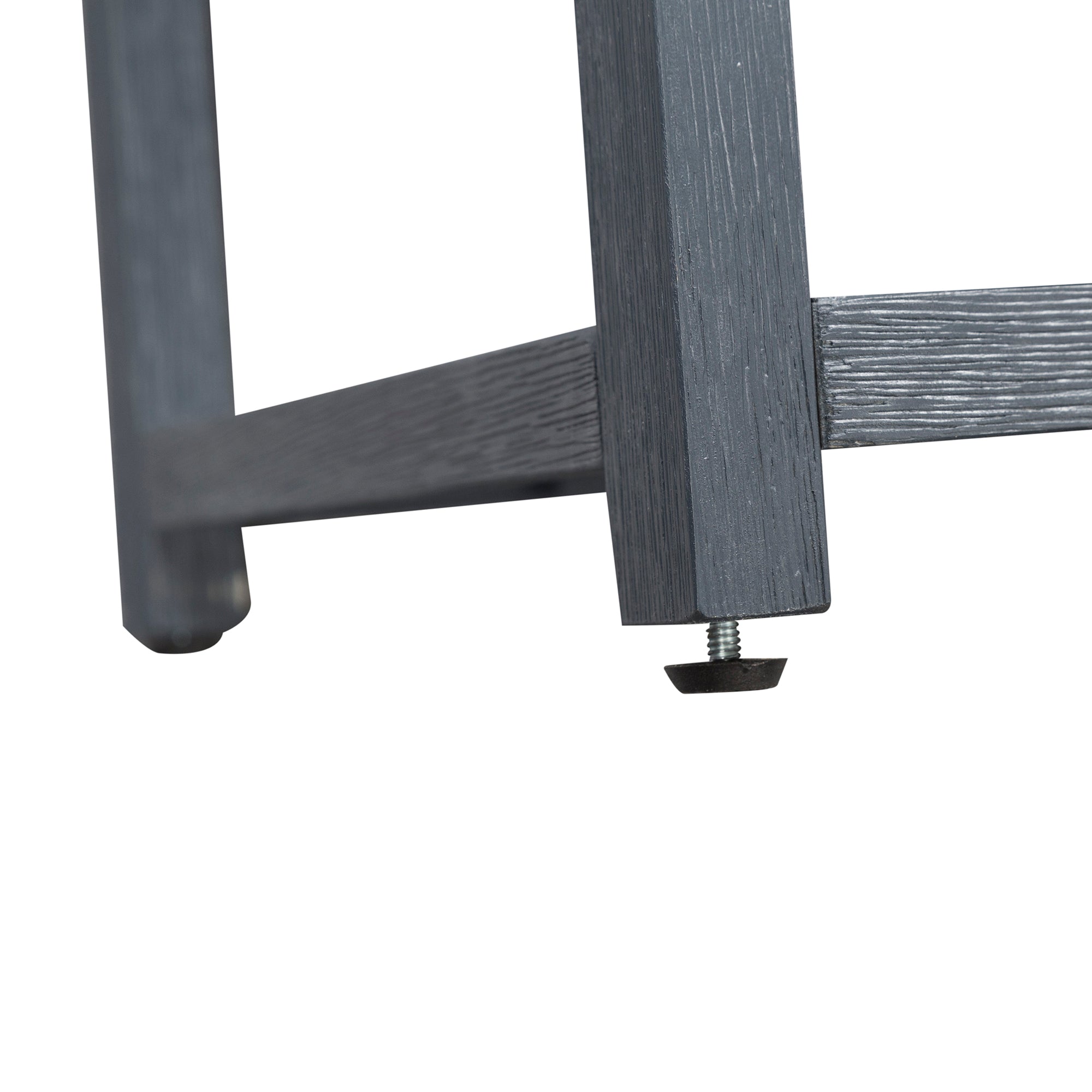 Turn your house into a home with the eclectic East End accent table. Crafted of Acacia Solids and veneers, this piece features a wire brushed Denim finish accented with brass ring hardware. This piece offers one full extension drawer and an open bottom shelf for additional storage. Versatile enough to work in any room from your living room to your bedroom. Unique and timeless, allow the East End accent table to bring inspirational design into your home.