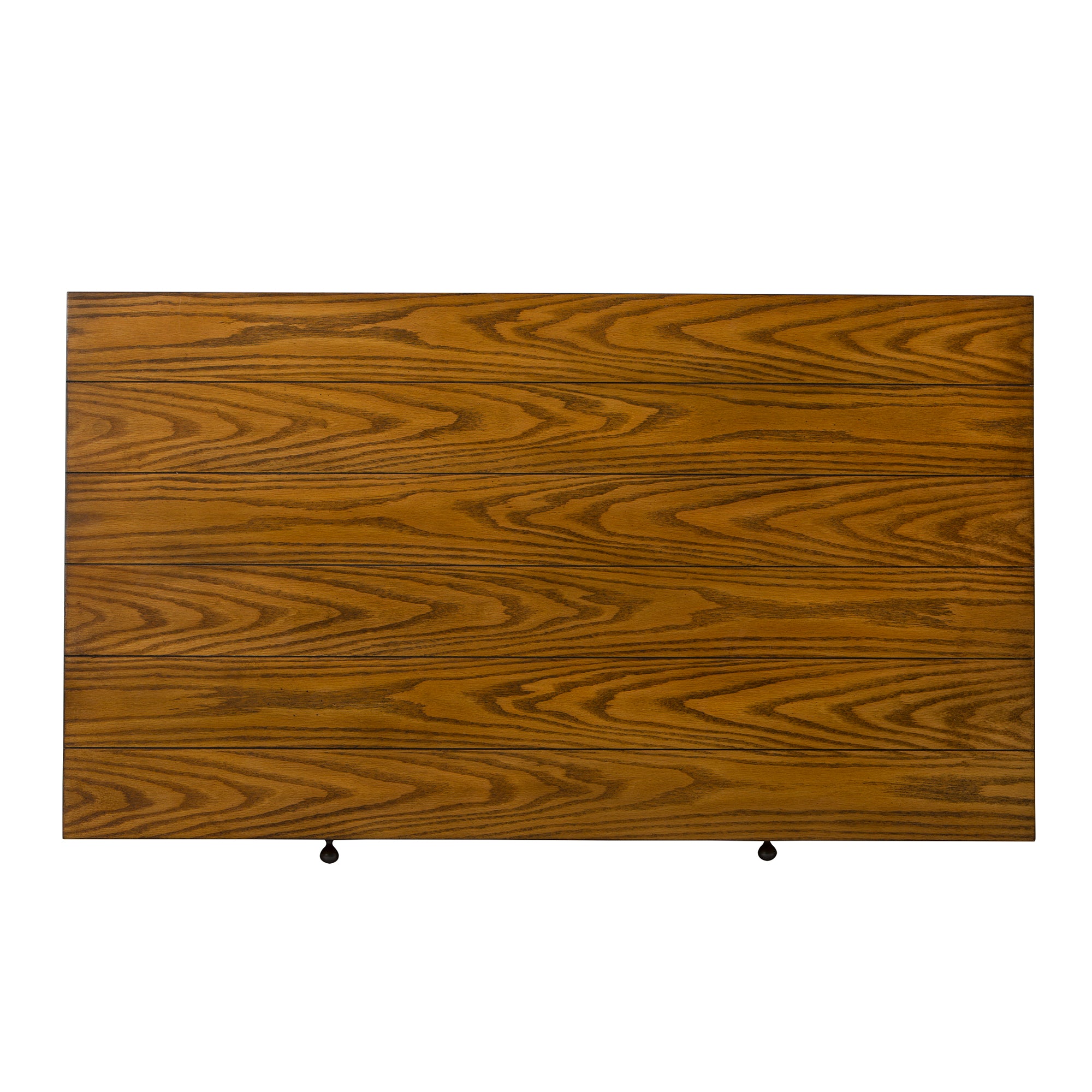 Enjoy family game night around the Lake House cocktail table. Crafted of poplar solids and oak veneers, this piece features an oak finish, appealing planked tops with additional wood and peg accents, planked bottom shelf, two push-through drawers accented by antiqued brass knob hardware, anchored by a tapered leg design. The golden oak finish allows for a universal appeal.