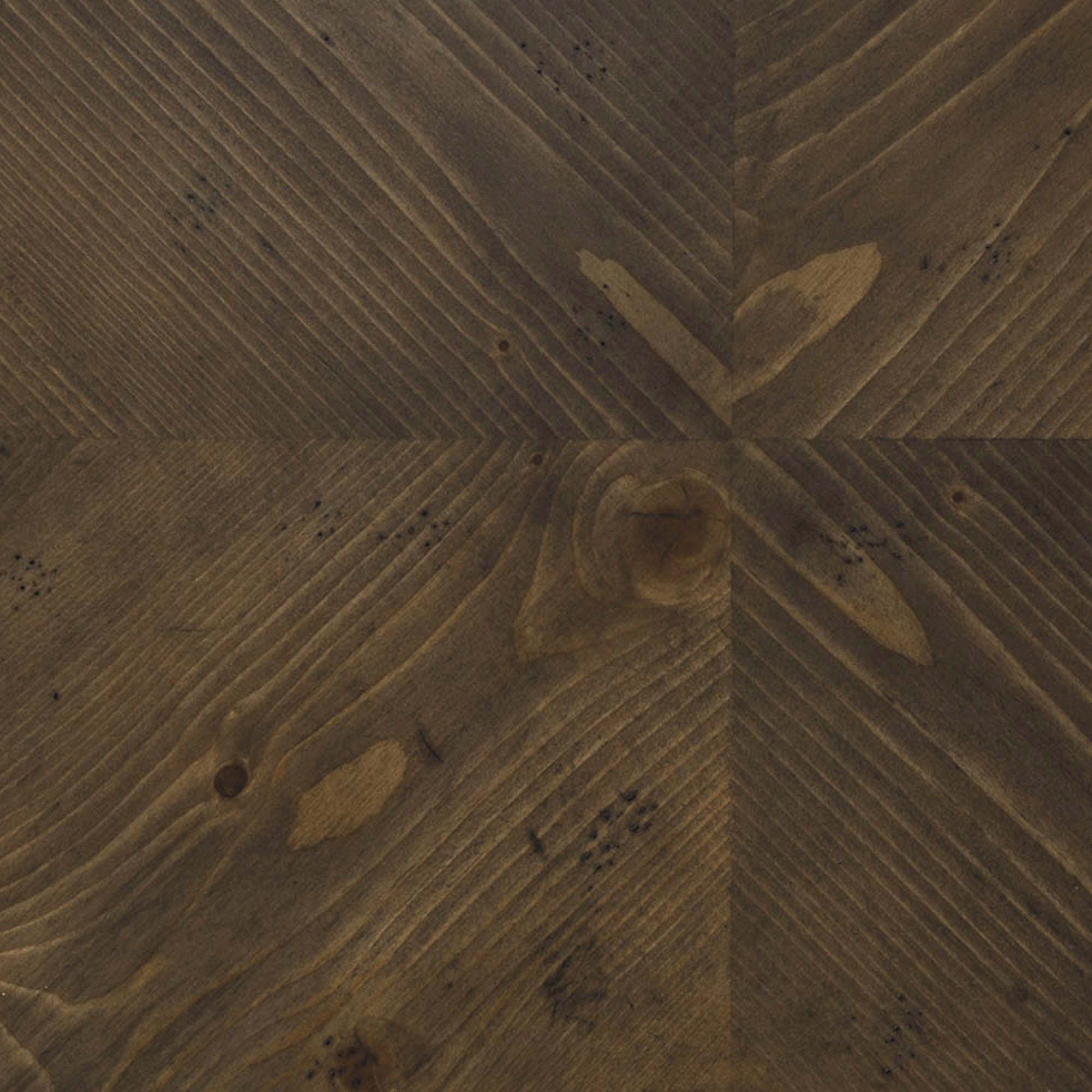 Elevate your space with the Mitchell chair side table. Crafted of poplar solids and cedar veneers, this piece features a nutmeg finish, a four-way fancy face veneer top, one pull-out drink shelf in black laminate with appealing antique brass knob hardware, two shelves for additional storage, anchored by block tapered legs. This simple yet sophisticated side table will make a great addition to your home.