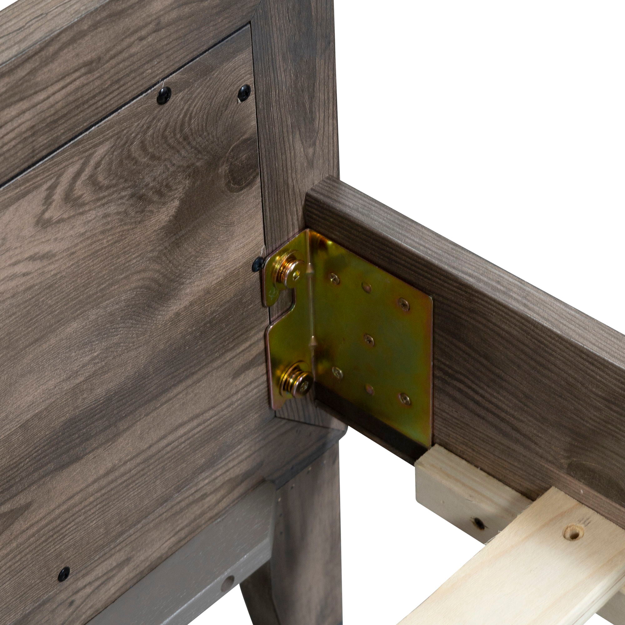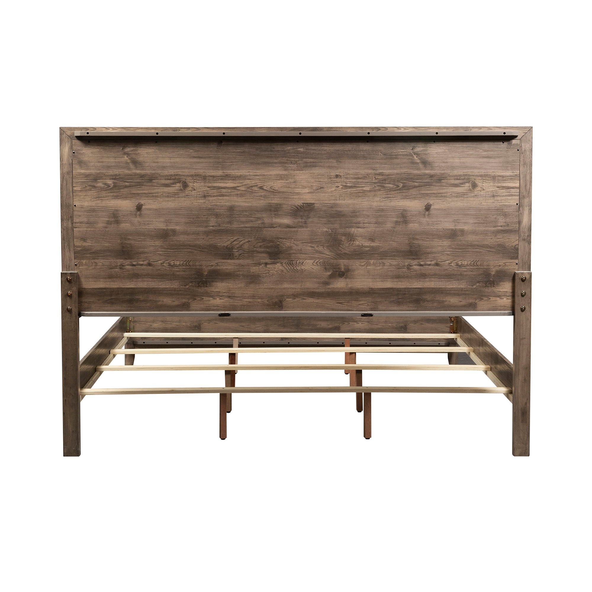 Enhance any room with this urban Ridgecrest panel bed. Crafted by rubberwood solids and paper laminate, this piece features a cobblestone finish, hook on rails, and a center support slat system, all anchored by crafted tapered legs. These piece offers an effortless blend of materials with distressed finishes, making it extremely versatile and adaptable to any space.