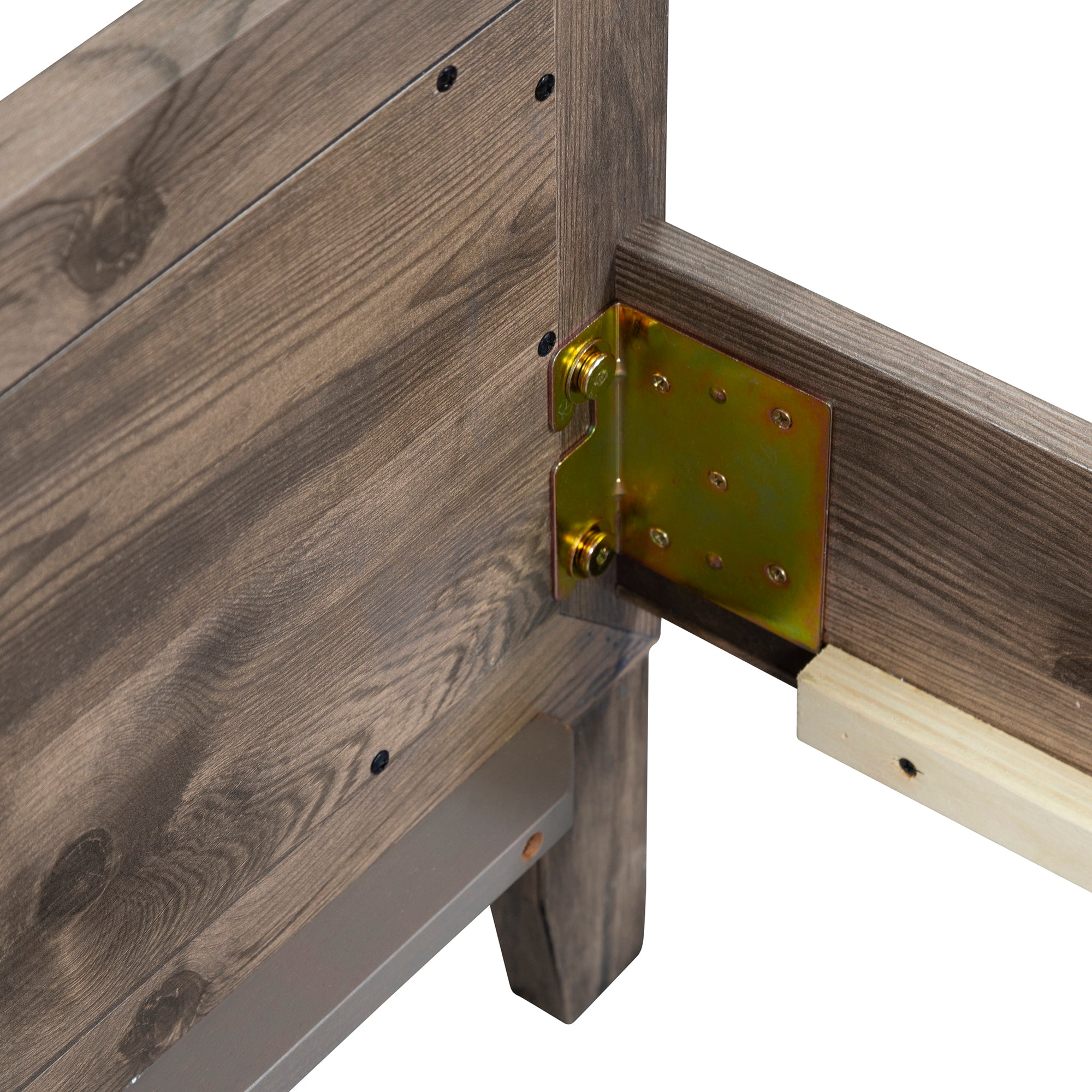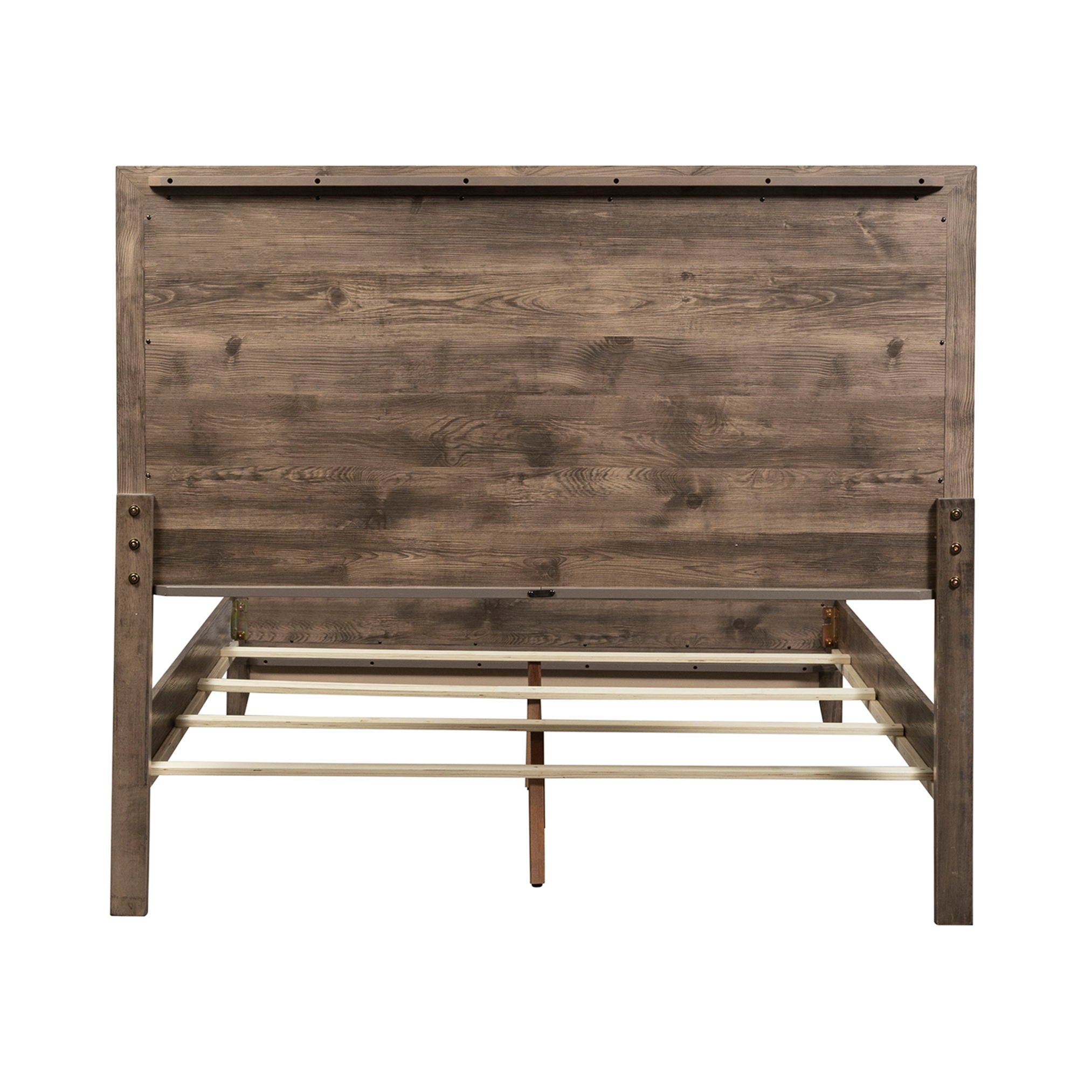 Enhance any room with this urban Ridgecrest panel bed. Crafted by rubberwood solids and paper laminate, this piece features a cobblestone finish, hook on rails, and a center support slat system, all anchored by crafted tapered legs. These piece offers an effortless blend of materials with distressed finishes, making it extremely versatile and adaptable to any space.
