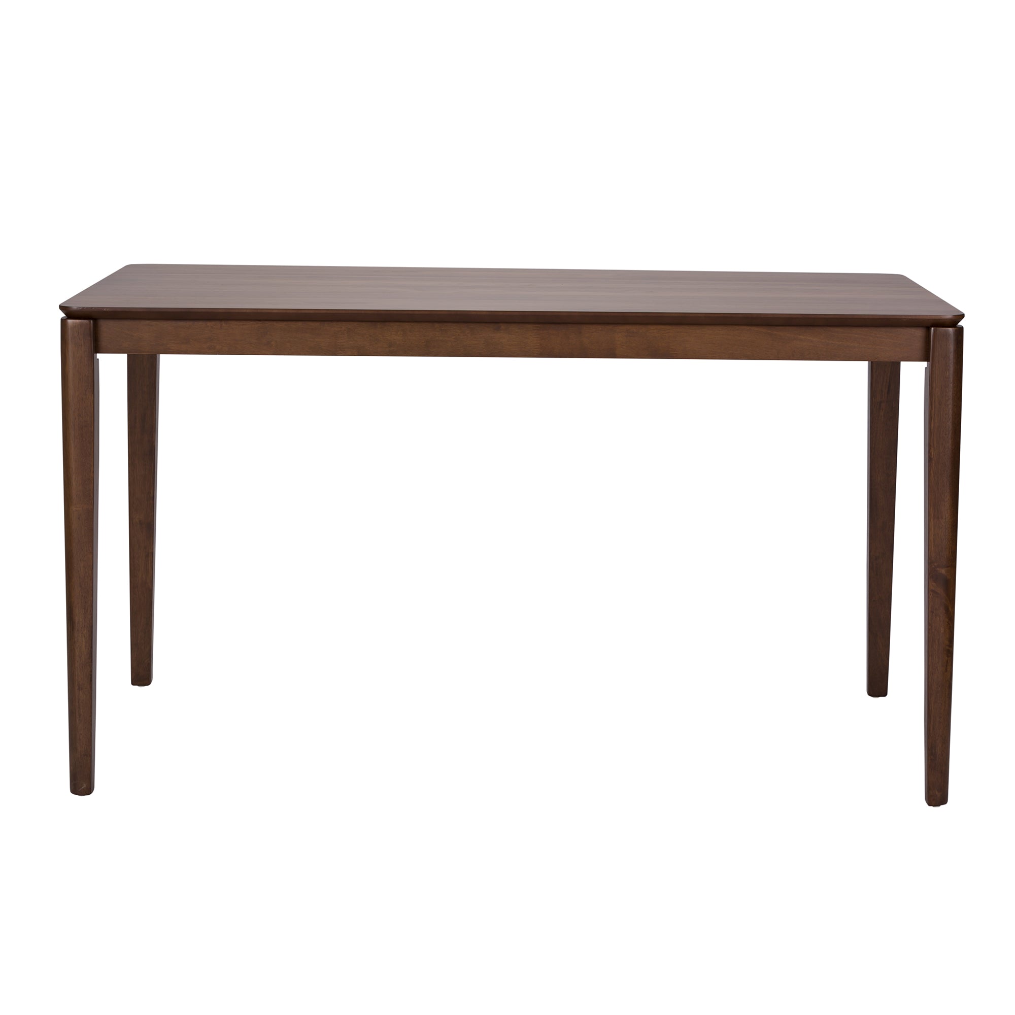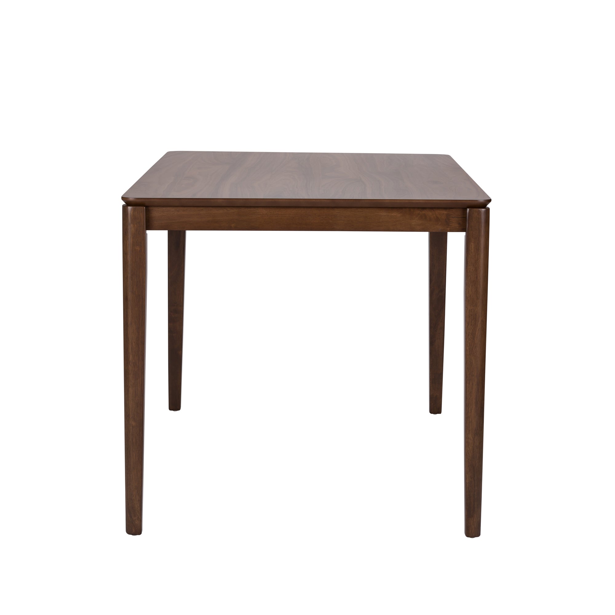 Gather the family around the Space Savers rectangular leg table. Crafted of rubberwood solids and walnut veneers, this piece features a satin walnut finish, a fixed top, and is anchored by tapered legs with a softly rounded edge. This table is sure to create a simplistic statement in any room.