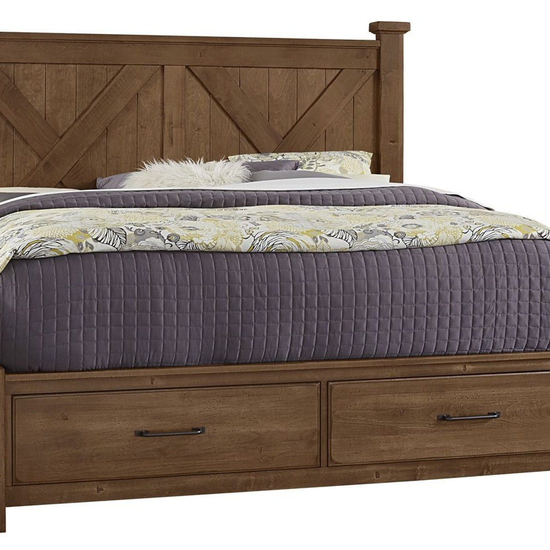 Vaughan-Bassett Cool Rustic - Queen X Bed With Footboard Storage - Amber