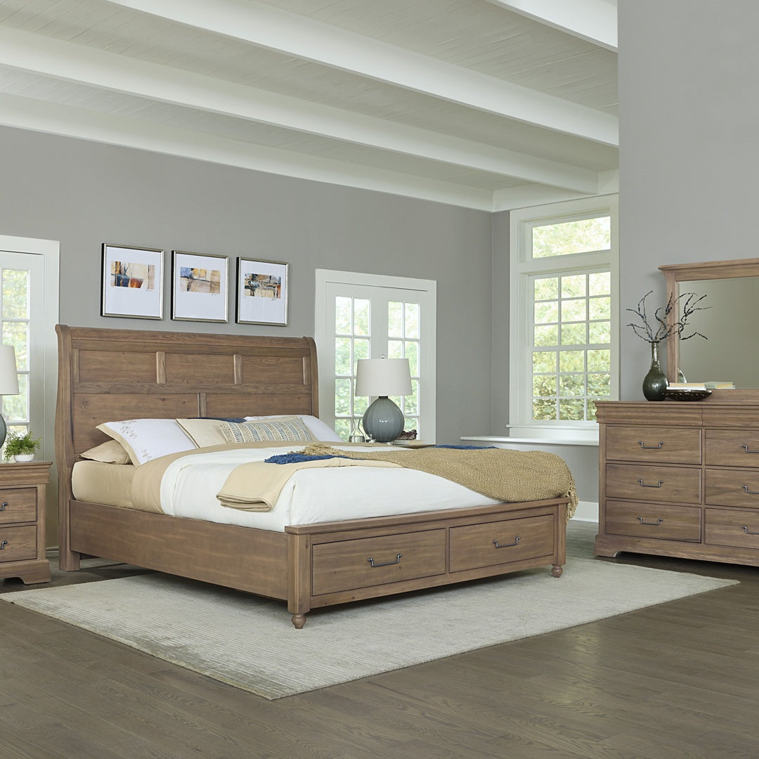 MADE IN USA - Galax, VA - Vista: A classic design with timeless elements. Crafted from Solid Poplar and Oak Veneer, this Louis Phillipe inspired suite features a felt-lined drawer hidden behind the shaped moulding at the top of the dresser and chest. The storage pieces feature antiqued pewter drawer pulls with dual ball bearing, self-closing drawer guides. There are two classic beds, Mansion and Sleigh, both with an option for footboard storage. Through an innovative program with the Virginia Department of Forestry; Vaughan Bassett replaces every tree needed to produce their furniture. Over two million have been planted over the last 15 or so years.