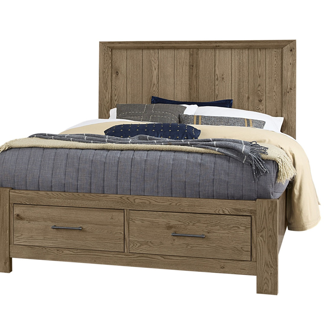 MADE IN USA - Vaughan Bassett - All produced and stocked in Galax, VA; by approximately 600 skilled craftsmen and craftswomen. Collection: Yellowstone - This collection takes rustic furniture to the next level. It is produced from White Oak Solids and Solid White Oak Veneer. Vaughan Bassett has develped a process that allows them to accelerate how wood ages and thus gives a very natural reclaimed wood appearance. They have also incorporated the American Dovetail Joint; which joins the bed posts to the headboard and footboard. This versatile collection has two outstanding beds in both Queen and King sizes. Both beds are also available with Footboard Storage. The signature bed is the American Dovetail bed. There are three terrific finishes; Dapple Gray, Chestnut Natural and a Two Tone (White and Buck Skin). Lastly, through an innovative program with the Virginia Department of Forestry, Vaughan Bassett replaces every tree used to produce its furniture. Over the last 15 or so years; 2 million trees have been planted.