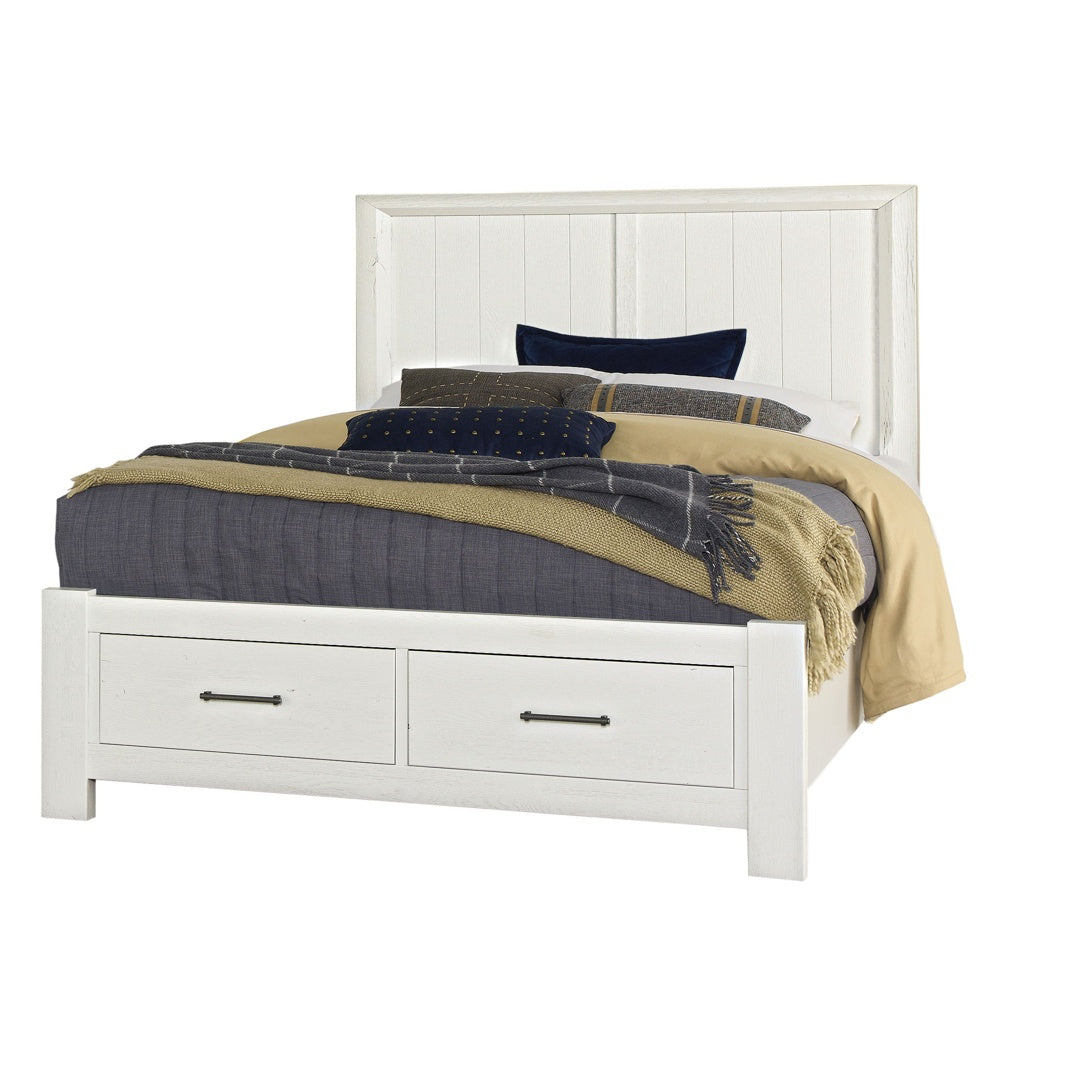 MADE IN USA - Vaughan Bassett - All produced and stocked in Galax, VA; by approximately 600 skilled craftsmen and craftswomen. Collection: Yellowstone - This collection takes rustic furniture to the next level. It is produced from White Oak Solids and Solid White Oak Veneer. Vaughan Bassett has develped a process that allows them to accelerate how wood ages and thus gives a very natural reclaimed wood appearance. They have also incorporated the American Dovetail Joint; which joins the bed posts to the headboard and footboard. This versatile collection has two outstanding beds in both Queen and King sizes. Both beds are also available with Footboard Storage. The signature bed is the American Dovetail bed. There are three terrific finishes; Dapple Gray, Chestnut Natural and a Two Tone (White and Buck Skin). Lastly, through an innovative program with the Virginia Department of Forestry, Vaughan Bassett replaces every tree used to produce its furniture. Over the last 15 or so years; 2 million trees have been planted.