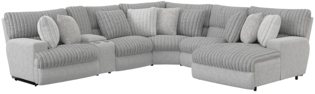 The Catnapper® Abraxas 6-Piece Moonstruck Power Reclining Curved Sectional with Console offers luxurious comfort with power reclining functionality. Featuring a convenient console for added storage and cup holders, this sectional provides ample seating and is perfect for enhancing the comfort and style of any living room.Read More