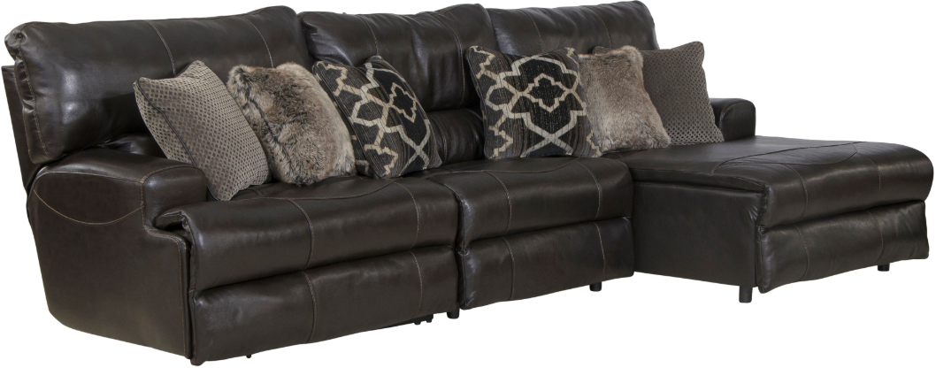 The Catnapper® Como 3-Piece Chocolate Power Reclining Right Arm Facing Sectional offers comfortable seating with manual reclining functionality. Upholstered in a rich chocolate fabric, this sectional provides spacious seating and a relaxed experience, making it a great addition to any living room for style and comfort.Read More