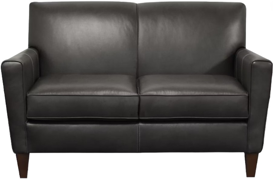 Our Collegedale leather collection's smaller scale is ideal for those short on space; however, its contemporary styling makes a big statement! The silhouette features a simple arm, high tapered leg, and contrasting pillows. The collection features a sofa, loveseat, chair, and ottoman.Read More