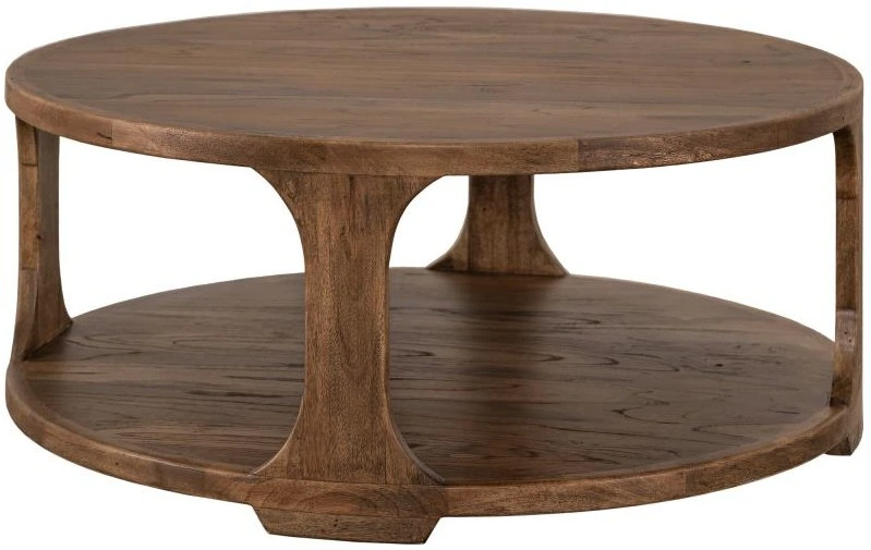 Our Balam occasional tables are handcrafted from mango and teak wood. This simple yet stunning collection will bring an organic, modern touch to your space. The Balam stained brown round cocktail table features a sleek modern design with a convenient bottom shelf, combining natural warmth and functional elegance.Read More