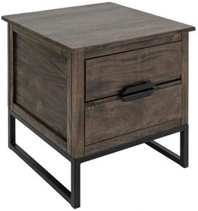 In addition to its attractive design, the Dark Mita collection offers practical features. The end table includes a sturdy metal base for support and two drawers with sleek black handles for storage. This combination of style and utility ensures the Mita collection is a beautiful and functional addition to any living space.