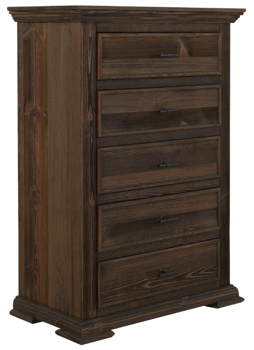 The durable mortise and tenon construction ensures long-lasting quality, while the five spacious drawers feature solid wood fronts with English dovetail joints for added strength. Hafele steel slides guarantee the smooth operation of the drawers. Sleek metal pulls with a non-chip matte black finish add a touch of modern elegance to this classic piece. This 5-drawer Chest is not just a storage solution; it's a statement of craftsmanship and sophistication for your home.