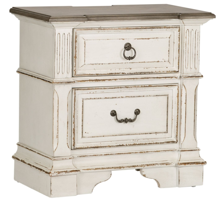 This 2 drawer night stand is the perfect way to accent your room with an effortless blend of European Traditional design. Weathered brown whitewash top and antique white finish, combined with heavy chipping, creates a truly unique look.Read More