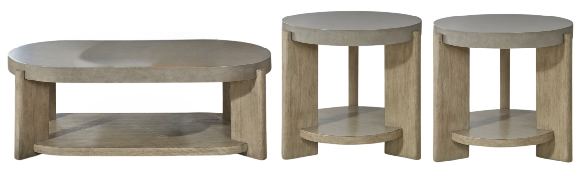 Feel at home with the Affinity three-piece set which includes the oval cocktail table and two round end tables. Crafted with excellence using Rubberwood solids and Quartered White Oak veneers, this set features faux concrete tops and rounded oblong legs in a Dusty Taupe finish.Read More
