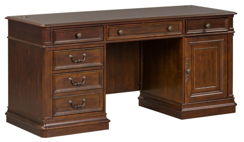 Create scale, add comfort, and define your style with the Brayton Manor credenza. Crafted with poplar solids with cherry and birch veneers, this piece features a smooth cognac finish, flip down keyboard tray, CPU tower/media storage space equipped with a slide out tray, and a locking file drawer for added security.Read More