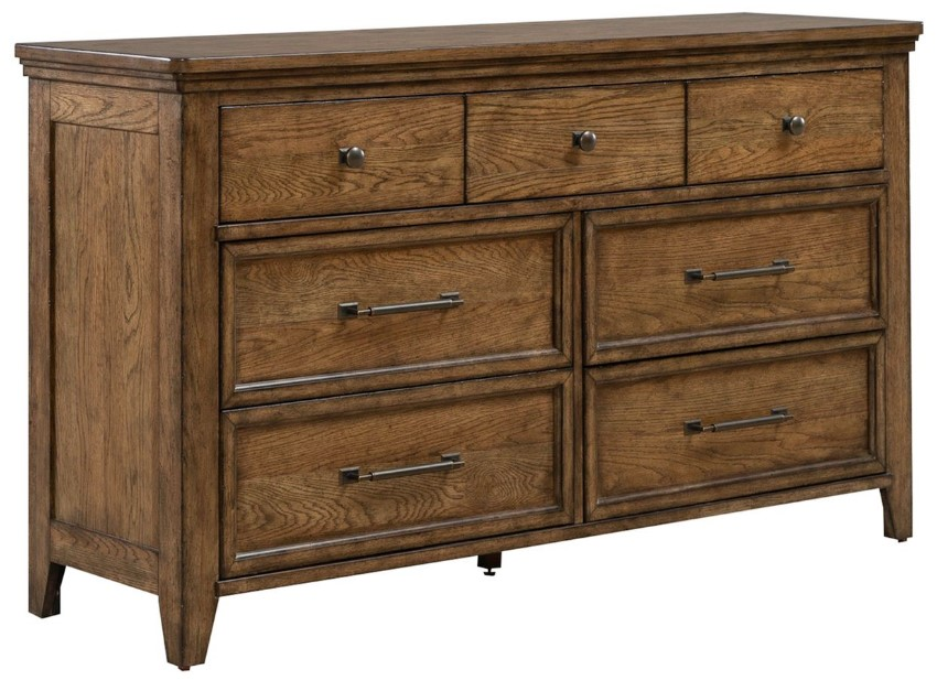 Create a calm and peaceful oasis with the Carolina Park 7 drawer dresser. Crafted with excellence using Rubberwood solids and Split Heart White Oak veneers, this dresser features an Amber Brown finishRead More