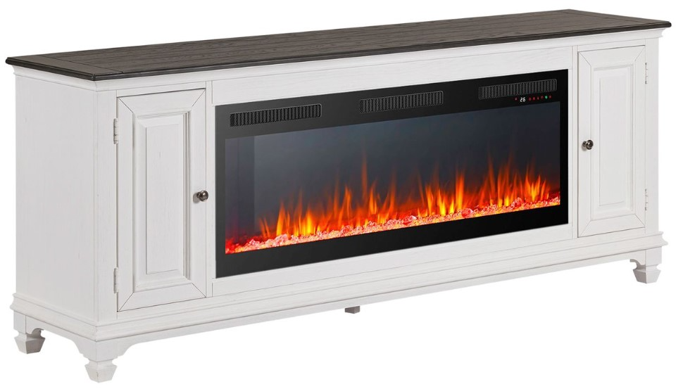 Charming and full of character, the Allyson Park 80 Inch Fireplace TV Console blends cottage-inspired design with modern functionality. Crafted of Poplar solids with Cathedral White Oak and Pine veneers, it features a striking two-tone Wirebrushed White and Charcoal finish that brings warmth and texture to your space.Read More