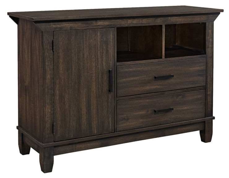 Accent your home with rustic style using the Double Bridge sideboard. Crafted of rubberwood solids and acacia veneers, this piece features multiple storage options, including one adjustable shelf hidden behind the door, a felt lined top drawer, and two fully stained full extension drawers.Read More