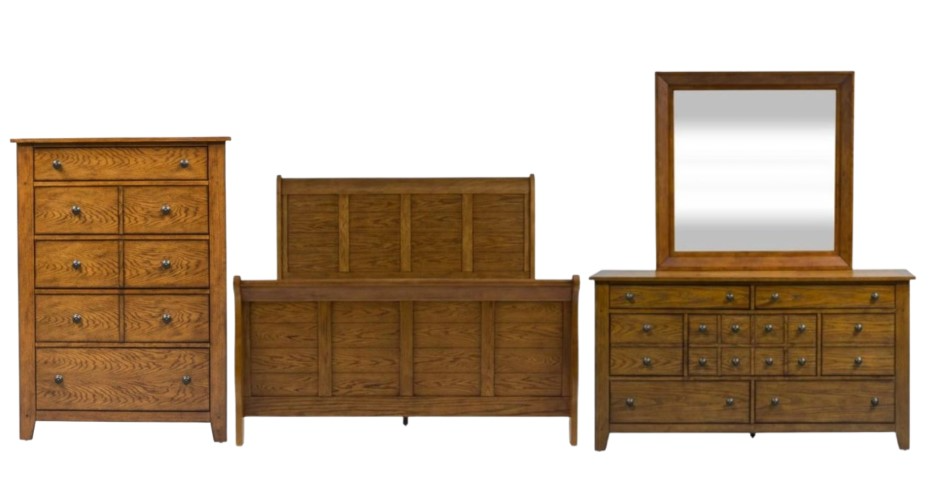 Complete your rustic American look with the Grandpa’s Cabin queen sleigh bed, dresser, mirror, and chest. Crafted of rubberwood solids and oak veneers, this kit features complete case dust proofing to protect your contents, French and English dovetail drawer construction, full extension and fully stained interior drawers.Read More
