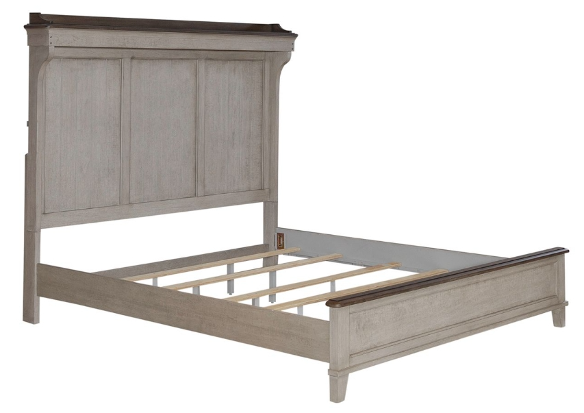 Create a relaxing retreat with the Ivy Hollow king mantle bed. Crafted of poplar solids with pine and alder veneers, this bed features a heavily distressed weathered linen and dusty taupe finish with saw marks.Read More