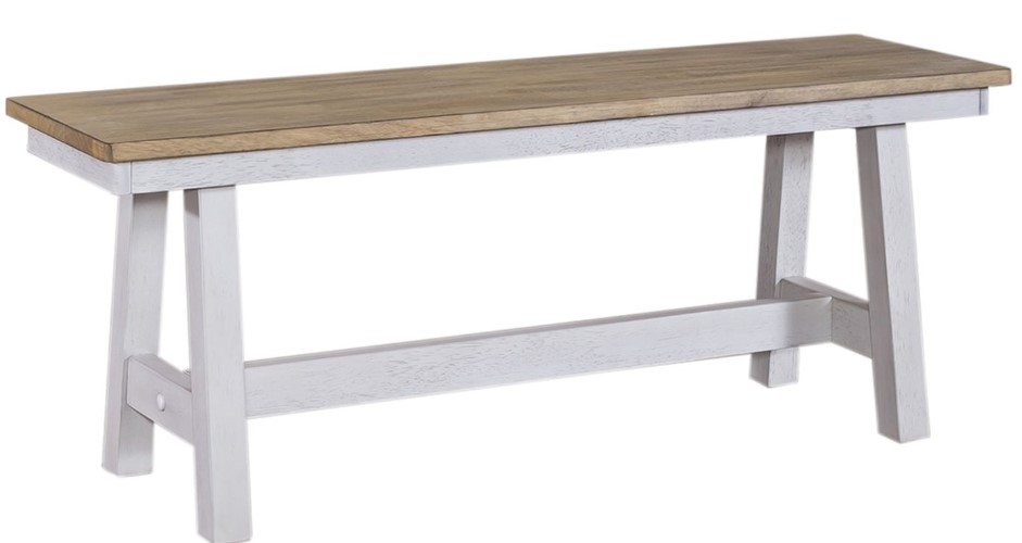Sit in comfort and style with the Lindsey Farm backless bench. Crafted of rubberwood solids, this piece features a weathered white and sandstone finish, nylon chair glides to protect your flooring, and a wooden seat bench.Read More