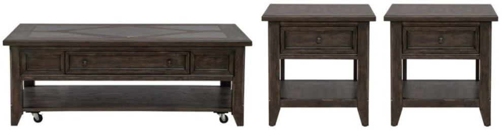 Includes a rectangular cocktail table and two end tables