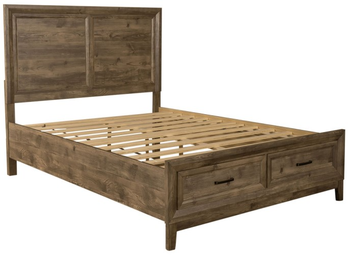 Enhance your home with the Ridgecrest king storage bed. Crafted of rubberwood solids with paper laminate, this kit features a cobblestone finish, a headboard in a two-panel picture frame style and a footboard with two storage drawers with hook-on rails and a center support slat system.Read More