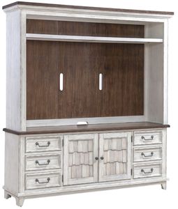 This two-tone white and tobacco entertainment center combines ample shelving and storage compartments with a sturdy build, offering room for a TV, media devices, and décor. Its adjustable shelves and spacious layout help organize electronics and accessories neatly while enhancing your living area's functionality.Read More