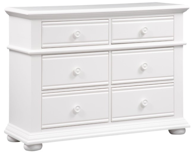 Obtain a fashionable cottage look with the Summer House 6 drawer dresser. Crafted of pine solids with painted MDF, this piece features bottom case dust proofing, full extension drawer glides for easy access to storage, fully stained interior drawers, felt lined top drawers, and is accented by wooden knob hardware.Read More
