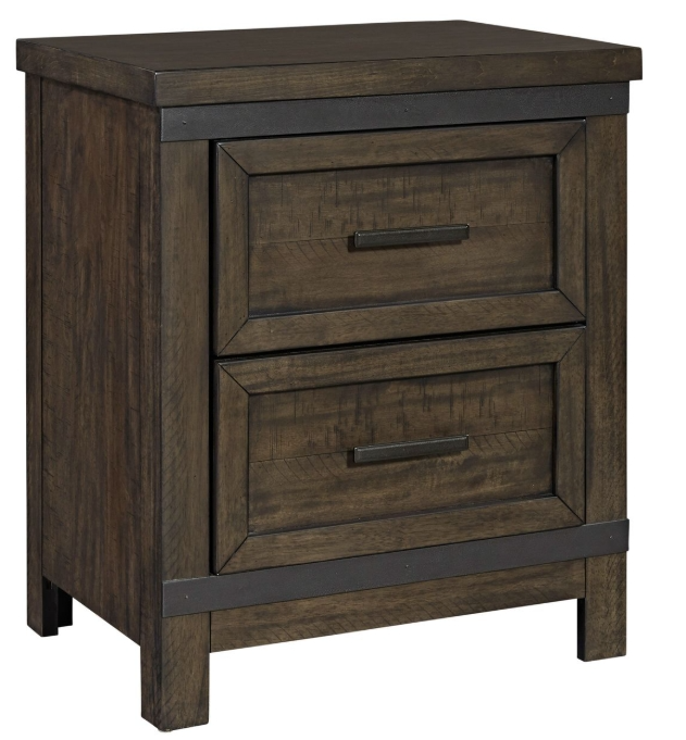 Indulge in a casual, yet contemporary look with this Thornwood Hills night stand. Crafted with rubber wood solids and interesting mango veneers, this piece features fully stained interior drawers, planked tops and sides, full extension metal drawers for easy access to storage, a felt lined top drawer, and bottom case dust proofing.Read More