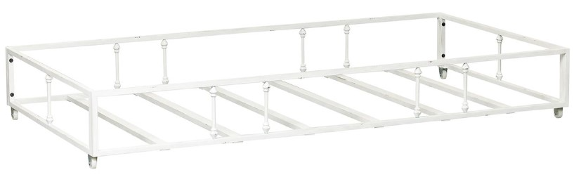 Add an extra bed without taking up any additional room with the Vintage Series trundle. Crafted of metal tube and finished in a beautiful antique white with wear thru. The trundle features turned spindles for decorative appeal and easily stores underneath the Metal Day bed when not in use. Features casters for ease of movement.Read More