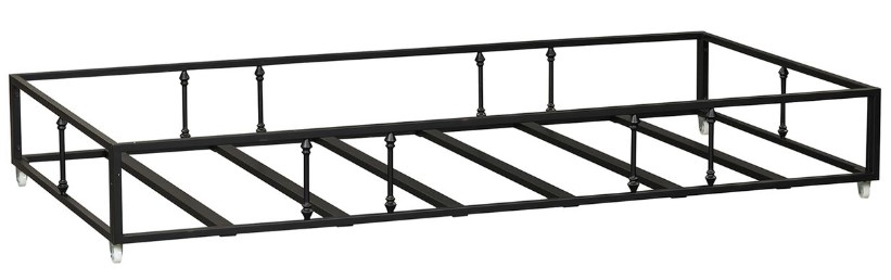 Add an extra bed without taking up any additional room with the Vintage Series trundle. Crafted of metal tube and finished in a beautiful black white with wear thru. The trundle features turned spindles for decorative appeal and easily stores underneath the Metal Day bed when not in use. Features casters for ease of movement.Read More