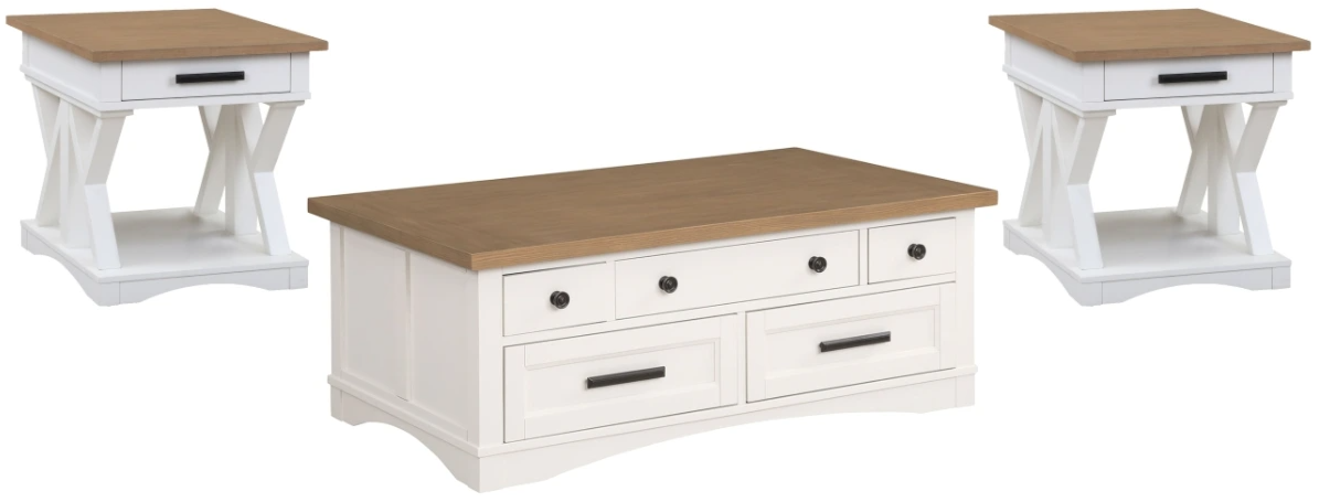 Set includes 1 lift top cocktail table and 2 end tables