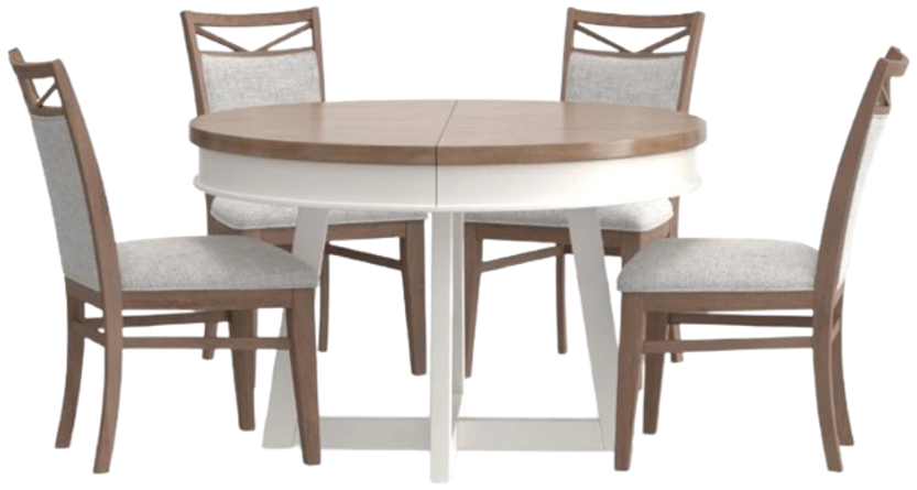 This expandable round table and four chairs set is the perfect combination of timeless charm and modern versatility. The expandable tabletop is designed to accommodate groups of varying sizes, making it ideal for intimate dinners or large family gatherings.Read More