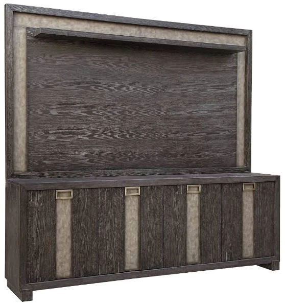 Contrasting shagreen accent panels across both console and hutch