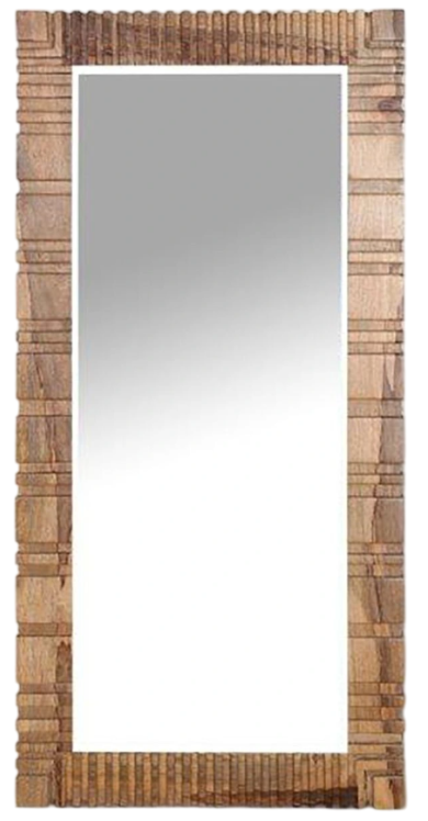 This floor mirror makes a bold statement with its 37" width and 80" height. A hand-carved motif and matte Amber finish highlight the natural mango wood, while beveled glass and French cleat hardware ensure both security and style. Functional yet striking, it enriches any space.Read More