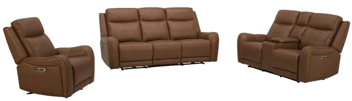 Set includes power recliner, loveseat, and sofa