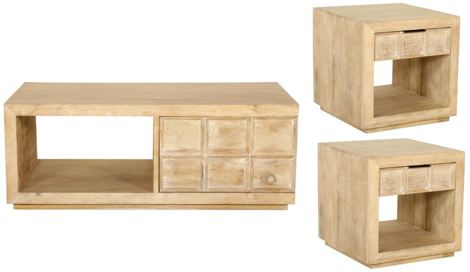 Elevate your living space with the Laguna 3-piece bleached natural storage occasional table set, a versatile collection that combines stylish design with practical storage. Crafted from quality hardwood solids and veneers, each piece is finished in a soft bleached natural tone that highlights the wood’s grain and adds a light, airy feel to your décor.Read More