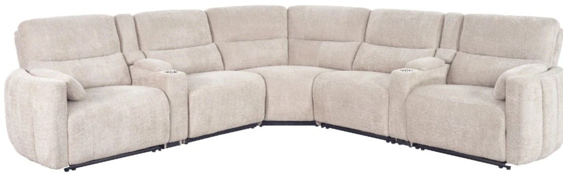 Covered in gorgeous Buttercream fabric, this transitional sectional features convenient power headrest and recline functions. Modesto's unique slender storage consoles feature a power center and a cupholder, offering a modern spin on the traditional sectional console. Two comfort arm pillows come included, ensuring that you maintain your preferred level of comfort.Read More