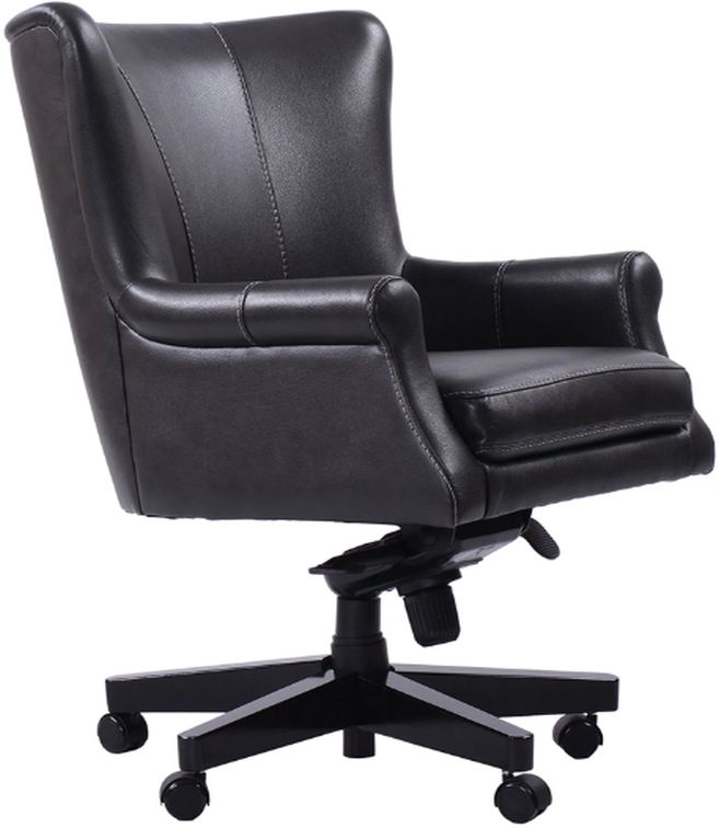 Add fashion and function to your workspace with the timeless style of this desk chair. Crafted in a Top Grain Leather, it features a five-wheel castered base that ensures mobility while its innovative design delivers unsurpassed comfort and versatility. No matter what you're working on, the task will feel easier with the support of this multifunctional chair.Read More