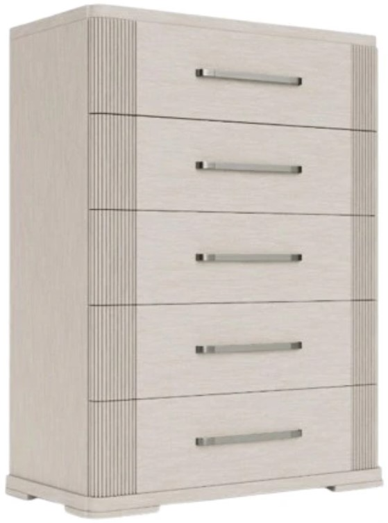 The Alexis latte essence chest showcases modern sophistication with its soft latte finish and clean lines. Crafted from quality wood, it offers ample storage through spacious drawers and sleek hardware, combining functionality and elegance to enhance any contemporary bedroom decor.Read More