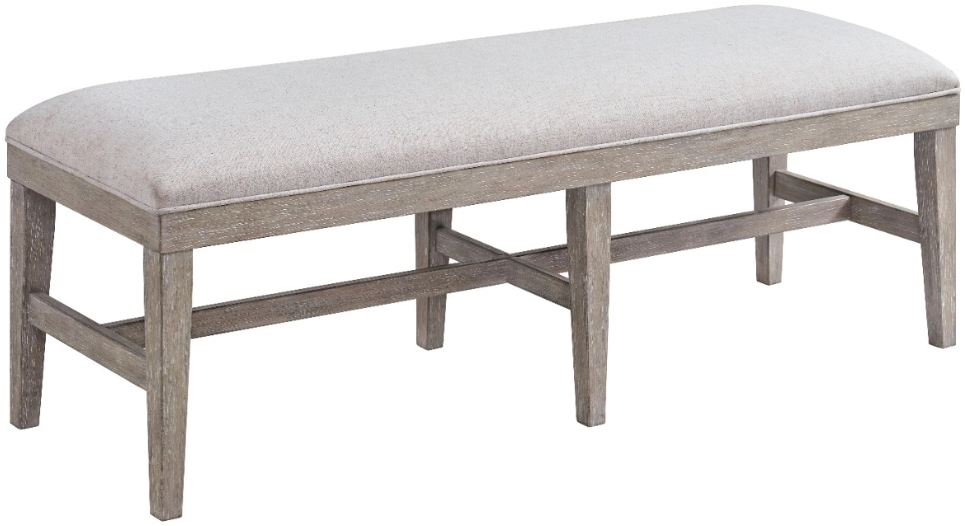 The Frosted gray 58" upholstered dining bench brings coastal charm and comfort to your dining area. Built from select hardwood solids, it features a soft 100% polyester upholstered seat with easy-clean fabric for everyday use and relaxed style.Read More