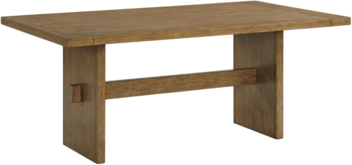 The Bozeman Trestle Dining Table combines rustic charm with timeless craftsmanship. Constructed of Acacia solids and veneers, it features a sturdy trestle base connected by a stretcher with faux tenon joinery detailing. Two 14" breadboard-style leaves extend the table from 72" to 100", making it perfect for both intimate meals and large gatherings.Read More