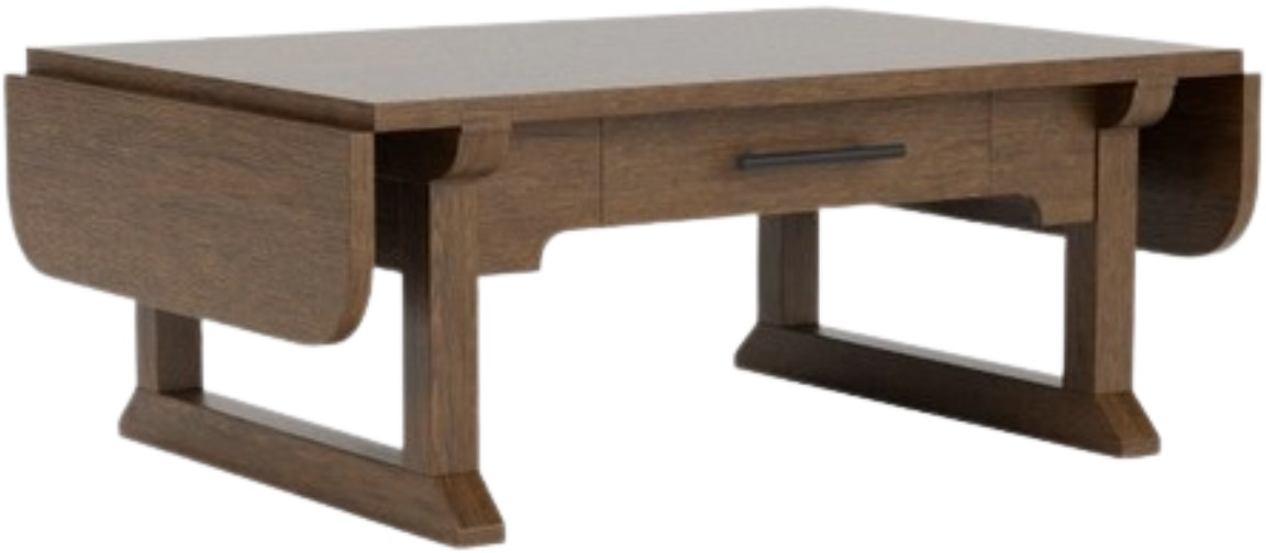 The Calhoun brown coffee table blends classic and transitional style, crafted from select hardwoods and oak veneers. It features a fold-leaf top, a single drawer with a black metal pull.Read More