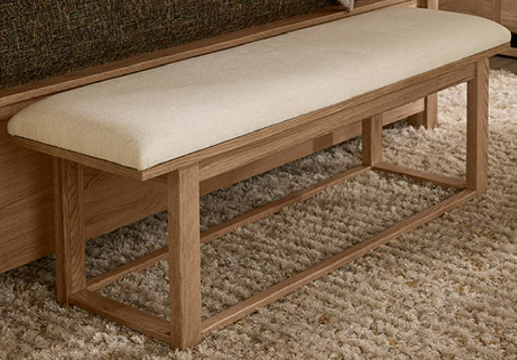 The Vaughan-Bassett Lodge & Loft blond oak-ivory cream upholstered bench combines wood tones with a soft, cushioned seat. Its versatile design offers comfort, style, and functionality, making it a perfect addition for bedrooms, entryways, or living spaces.Read More